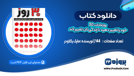 pdf 30 روز: عادات خود را تغییر دهید، تا زندگی‌تان تغییر کند رایگان به خوانندگان یادآوری می‌کند که تغییر عادات به زمان و تلاش نیاز دارد، اما با اراده و تعهد، امکان‌پذیر است. هر فصل به یک جنبه خاص از عادات و تأثیر آن بر زندگی اختصاص یافته و به‌طور عملی به تجزیه و تحلیل عادات می‌پردازد.