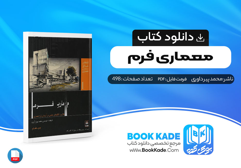 سایت بوک کده دانلود PDF کتاب معماری فرم محمد پیر داوری 498 صفحه پی دی اف را برای شما دوستان فراهم کرده است. انتخاب فرم در معماری را نهایی ترین تصمیم و در حقیقت محصول هنری و کالبد فیزیکی آن واکنش معمار در پاسخگویی به مسئله طراحی می دانیم. نقطه انتهایی در یک معماری و آغاز پیدایش فضا. این فرم متبین تمام خصوصیات محتوایی، حسی و فضایی اثر معماری می باشد که هنرمند قصد بیان آن را داشته. قدرت و دقت معمار را در انتخاب ویژگی های آن بر درک بهتر و درست تر معماری او توسط بیننده تاثیر قطعی و در تحقق هدف طراحی نقش به سزایی دارد. کتابی که پیش روست شیوه عملی و کاربردی برای ساخت مهمترین و نهایی ترین مسئله یک معماری یعنی فرم ارائه می دهد. با سایت بوک کده همراه باشید.